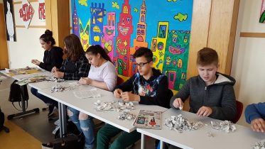 Am 10. April 2018 beschäftigten sich die Schülerinnen und Schüler der Klasse 6b der Johannes-Kepler-Realschule mit dem Thema Papierherstellung. Dabei erfuhren sie, welche Auswirkungen unser Papierverbrauch für die Wälder der Erde und für die dort lebenden Menschen und Tiere hat und was wir hier bei uns tun können. Nach einer Bilderpräsentation zur Urwaldrodungen in Kanada und Brasilien stellten die 6-Klässler aus alten Zeitungen den Faserbrei Pulpe her. Auf einem Schöpfsieb erstellten sie ein eigenes neues Blatt Papier, was farblich gestaltet wurde. Nach diesem Projektvormittag konnten alle Schülerinnen und Schüler den Recyclingprozess gut nachvollziehen.