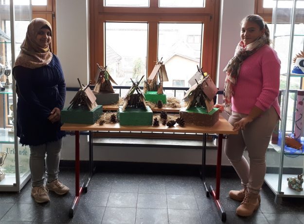Die Klassen 6A, 6B und 6C haben in dem WPK-Kurs Geschichte Häuser aus Naturmaterialien zusammengebaut.